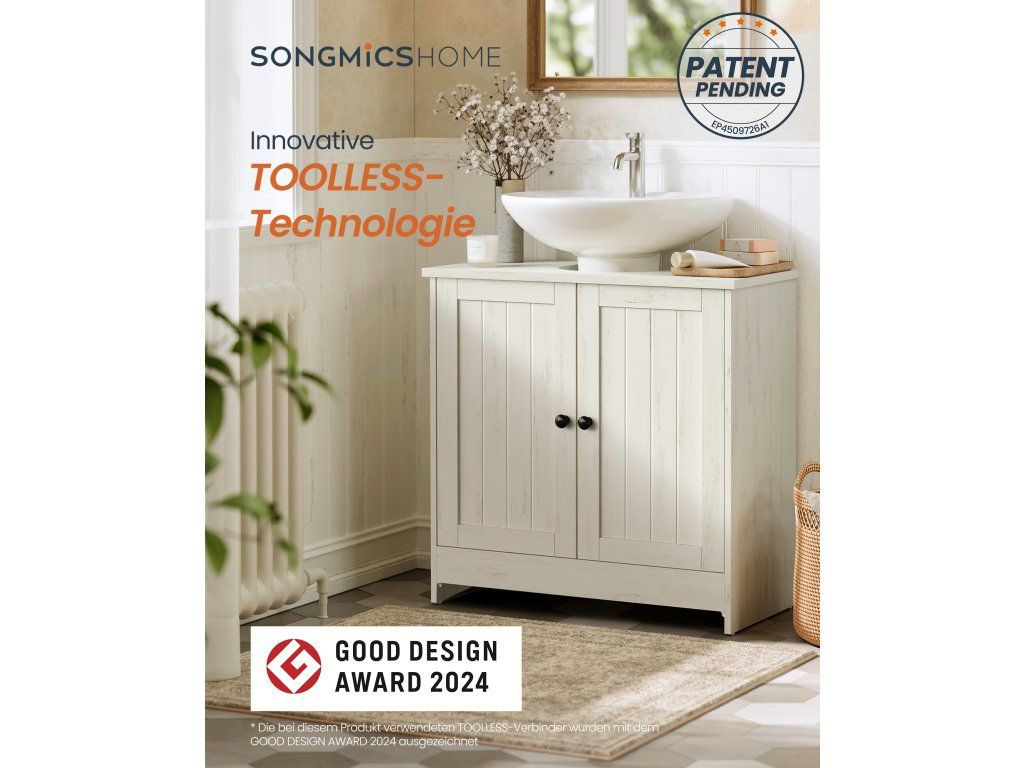Skříňka pod umyvadlo s rychlou montáží bez nářadí, stojící úložná skříň s nastavitelnou policí, rustikální bílá